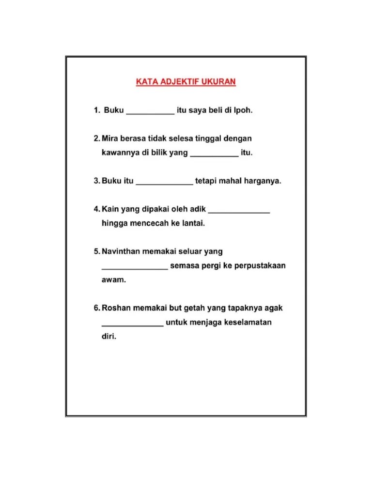 Latihan Kata Adjektif Ukuran Tahun 2 - Kata Adjektif Ukuran Activity. Orang kaya itu tinggal di rumah . 1,928 views may 26, 2021 kata adjektif ukuran tahun 2 buku teks & buku aktiviti ….more.more. Bulat kata adjektif ukuran b. Kata adjektif ukuran tahun 2.